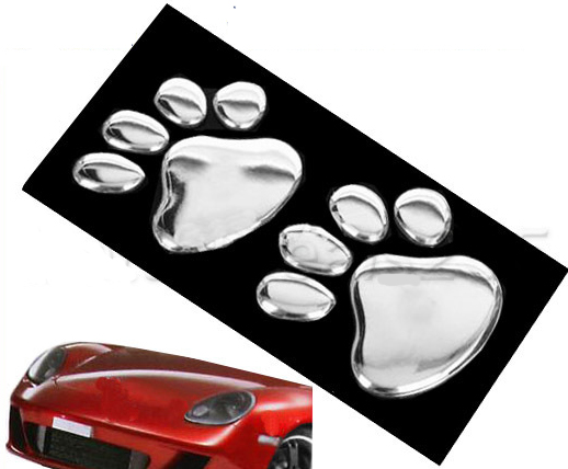• 1 Pc Paw Prints Chrome Car Badge, Grill Emblem, Trunk Emblem