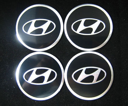 • 4 Pc Hyundai Black & Chrome Caps, Wheel Stick On, Wheel Center Caps